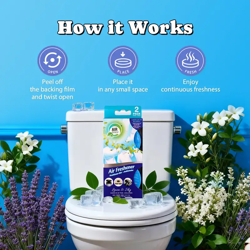 • Peel, Stick, and Enjoy. Easy to place on most smooth surfaces for continuous fragrance release.