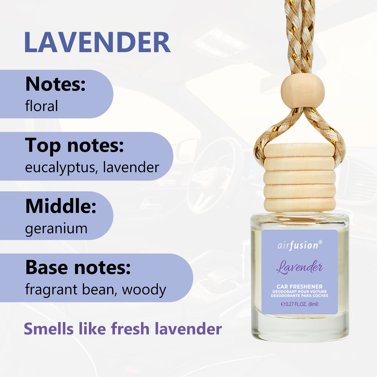 Transform every drive into a serene escape with our Airfusion Natural Collection—17 elegantly crafted car fresheners blending minimalist aesthetics with pure fragrance luxury. Each 30-day hanging diffuser features a hand-braided rope, wooden beads, and a clear glass bottle crowned with a light wood cap, creating an organic statement piece for any vehicle.