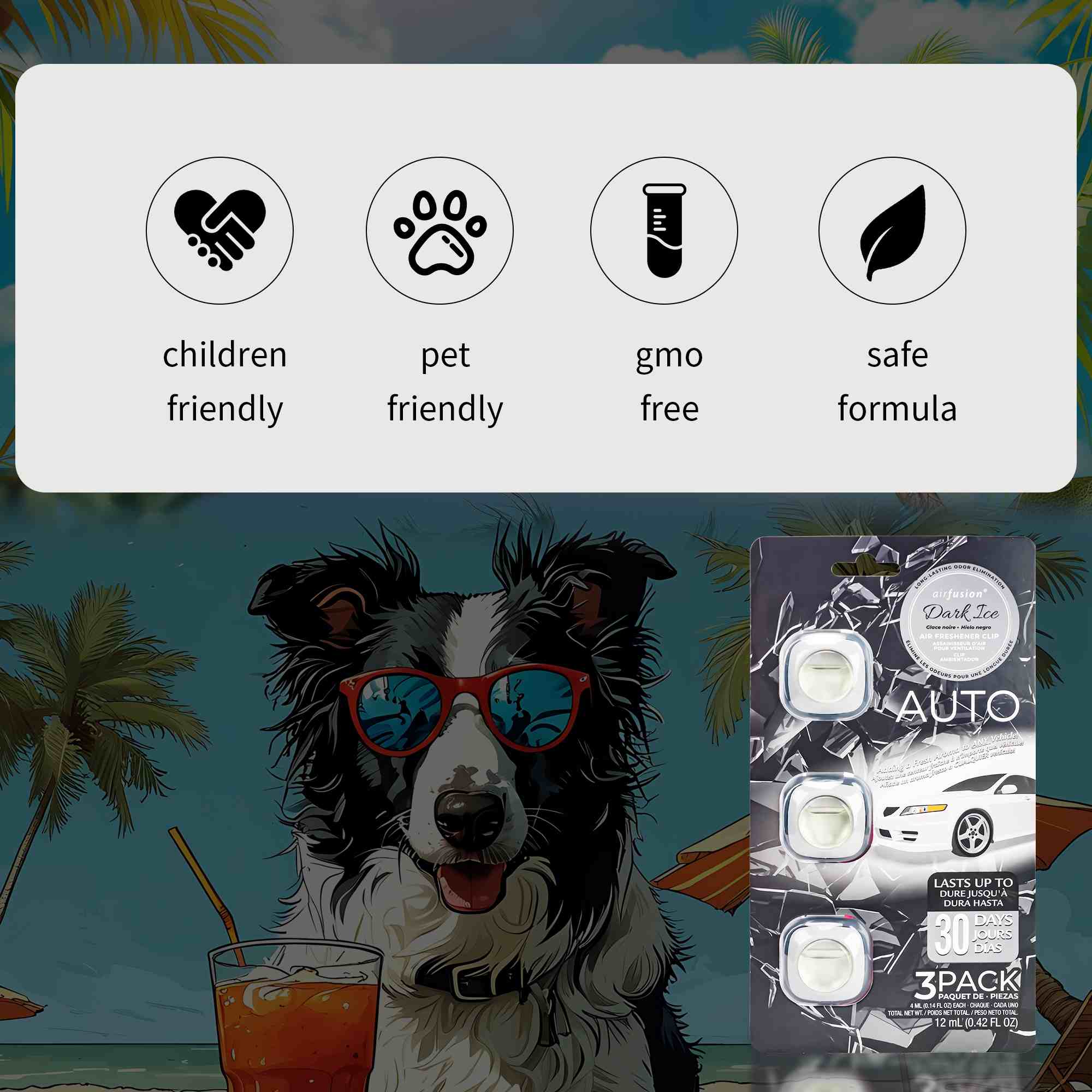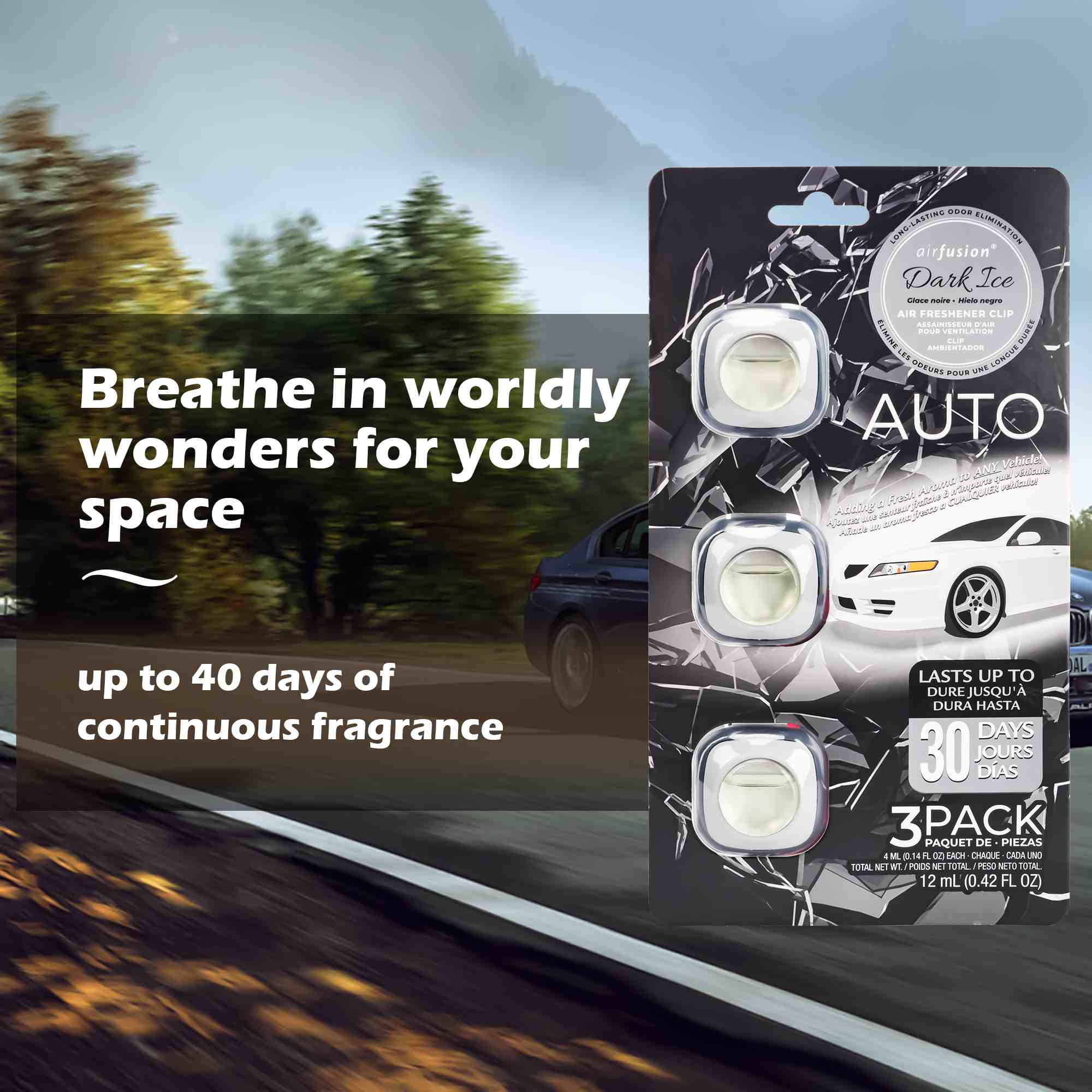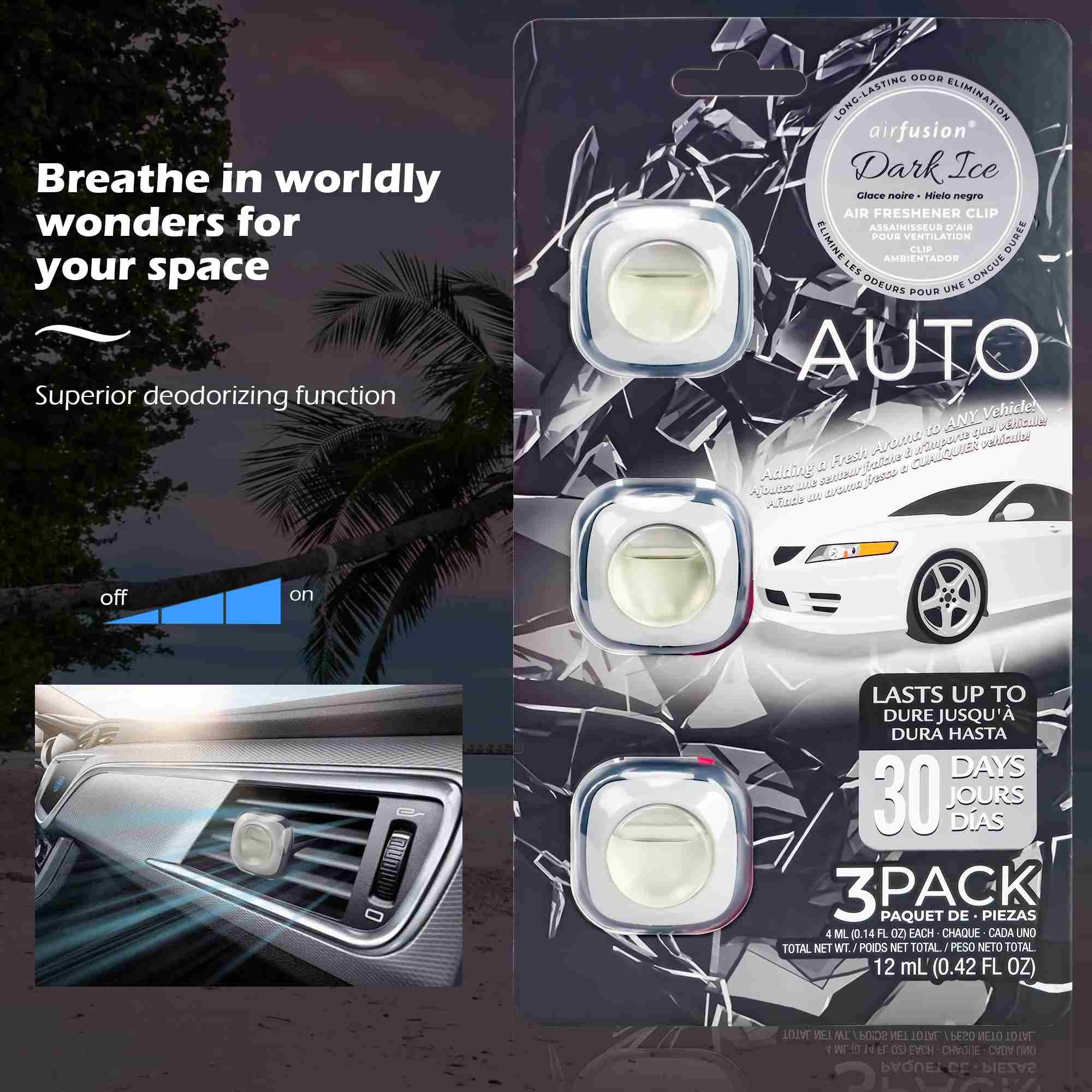 3-Pack Vent Clips: Includes three individual air freshener units for vehicles.