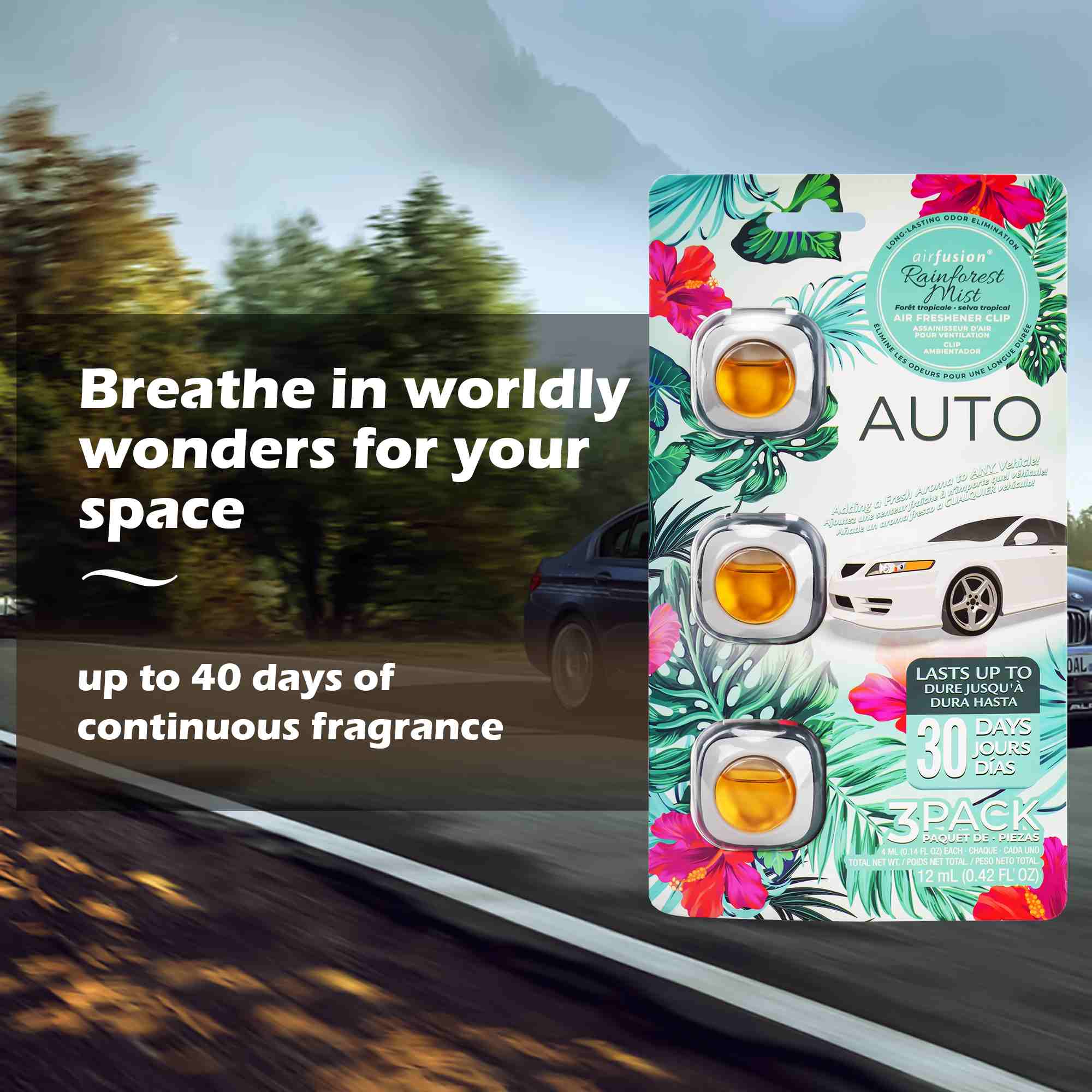 30-Day Freshness: Three car air freshener clips for extended scent duration.
